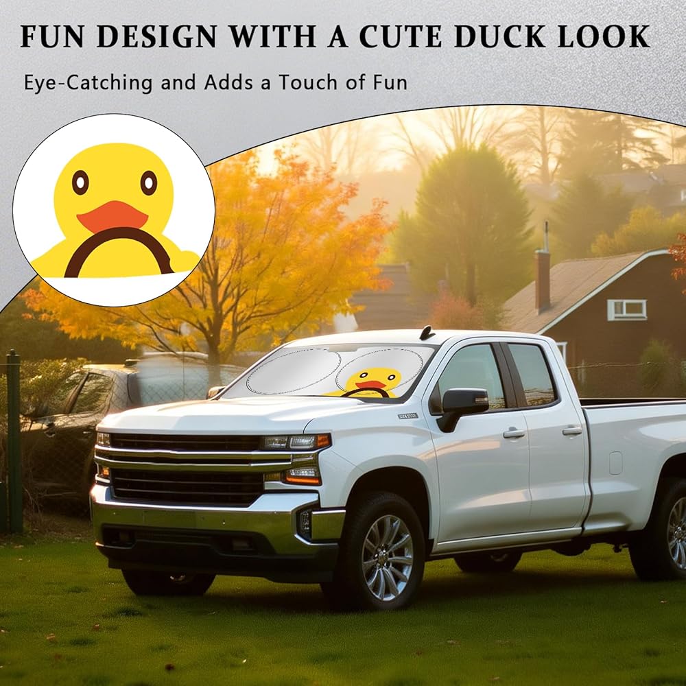 Playful Duck Design:The charming duck pattern gives the windshield sunshade for chevrolet silverado a fun twist, drawing eyes and ensuring you catch attention wherever you go