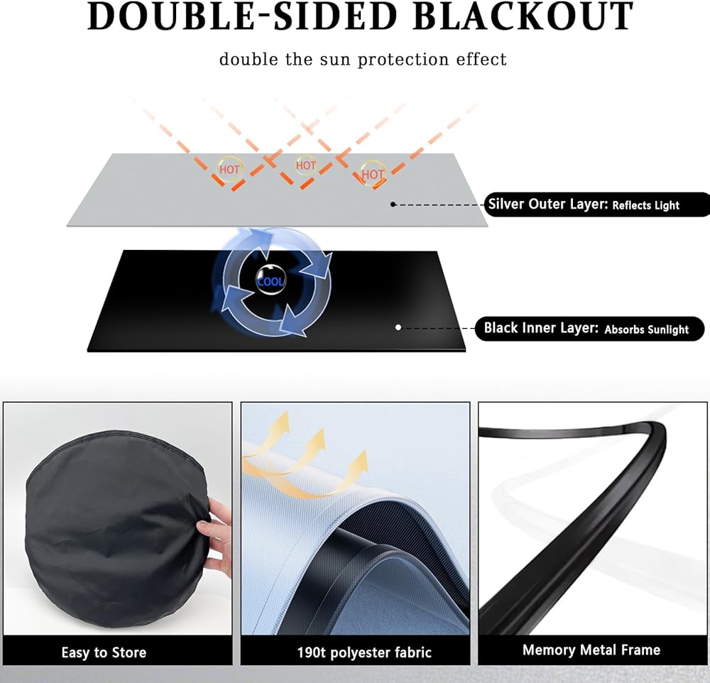 Interior Safeguard:The windshield sun shade for silverado prevents dashboard and seat fading by neutralizing UV damage and heat buildup, ideal for travel naps or parked vehicle protection