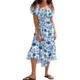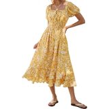 THOUGHTFUL DESIGN: Square neckline frames collarbone without slipping. Elastic puff sleeves flatter arms and won't pinch or ride up. Smocked back and waist stretch with you and hold shape all day. Double-tiered skirt creates graceful flowy movement