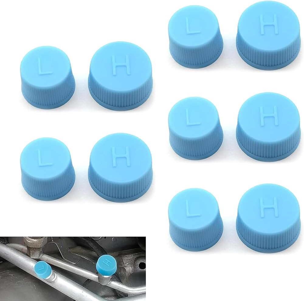 Package Includes: You will receive 10 R134a air conditioning repair system charging port caps containing 5 low pressure valve covers and 5 high pressure valve covers. Please be sure to check your vehicle's port dimensions before purchasing to ensure an exact fit.
