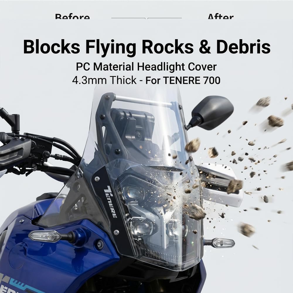 Made from high-performance Polycarbonate (PC) with exceptional impact and abrasion resistance, effectively defending against flying rocks and branches. Maintains over 90% light transmittance, ensuring no compromise to the original headlight's illumination and safety.