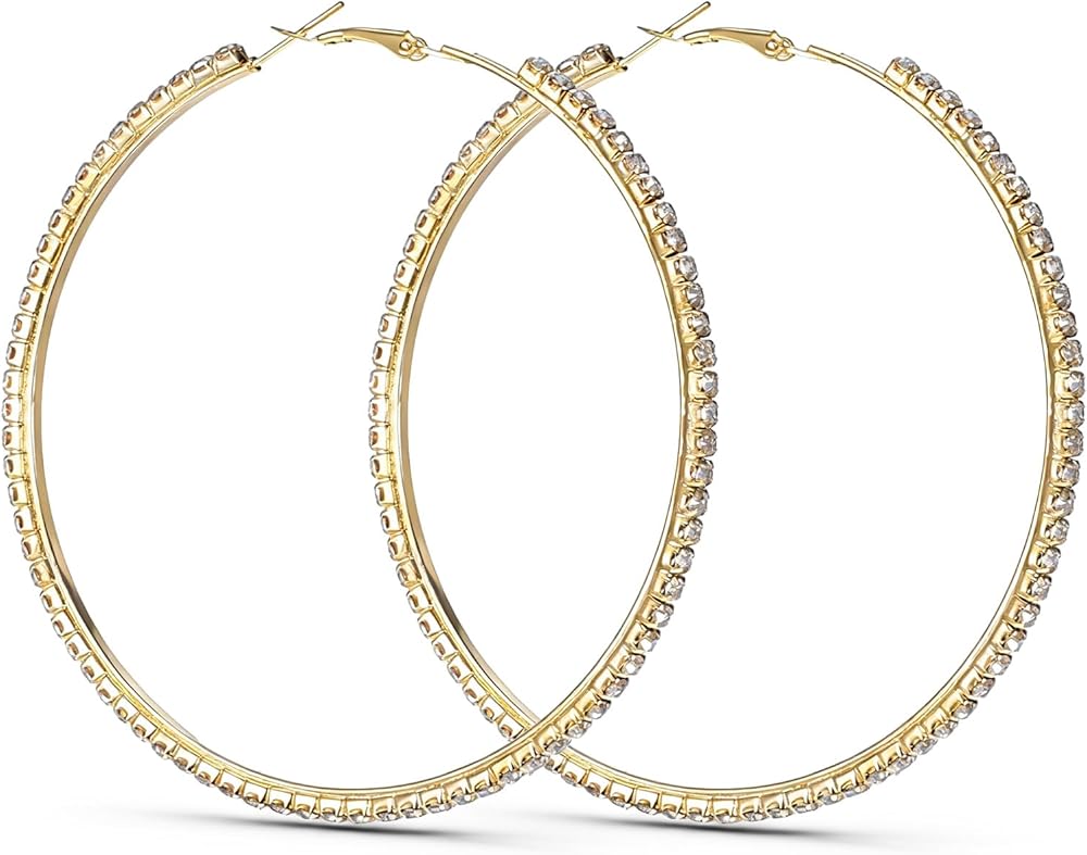 What you will receive: This product includes a set of 80mm sparkling rhinestone earrings set with brilliant cubic zirconia in a bold round design. Rhinestone earrings for women will add glamour to any look