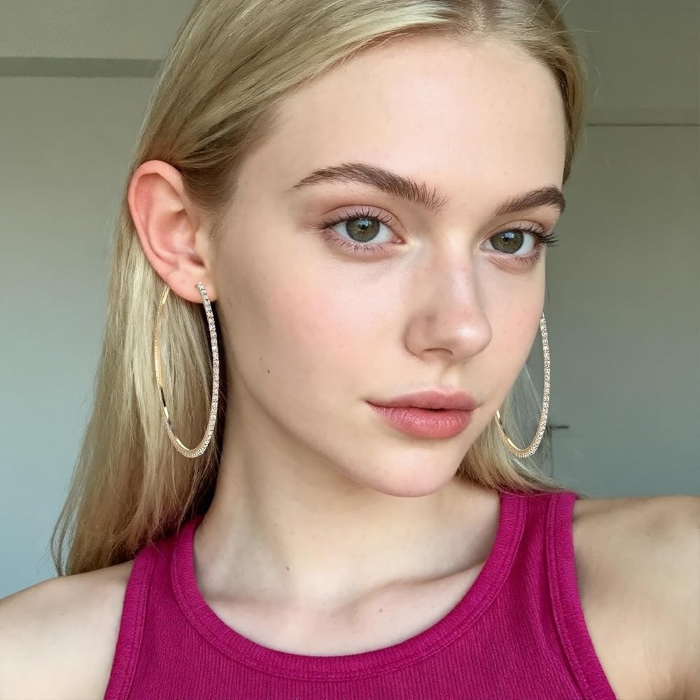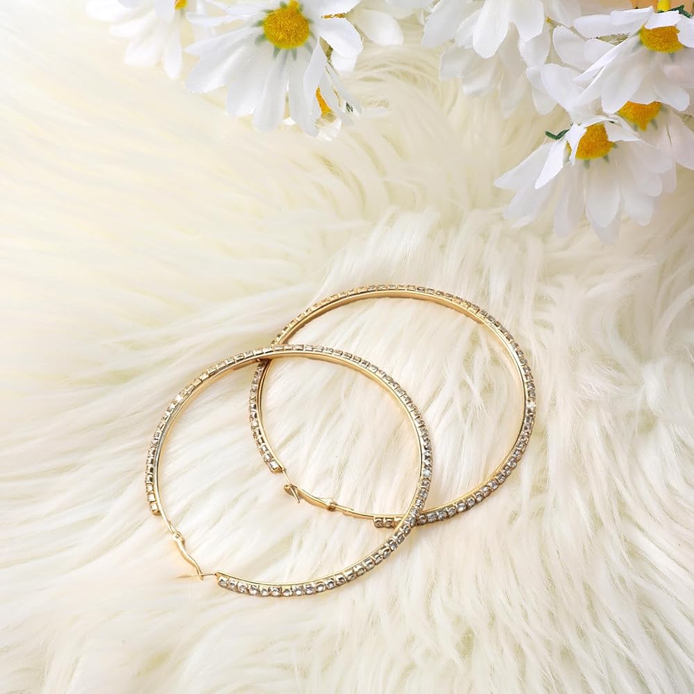 80mm Large Rhinestone Hoop Earrings for Women Sparkly Rhinestones Big Hoops Earring Gold Crystal Hoop Earrings Bling Dangle Drop Hoops Earring for Women Wedding Jewelry Party Favor