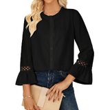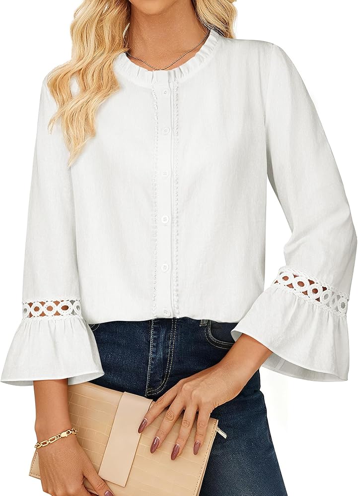 Lace Trim Bell Sleeves Features beautifully crafted lace inserts and flared bell sleeves, creating a flowy silhouette that enhances movement and gives the top a unique, premium look.