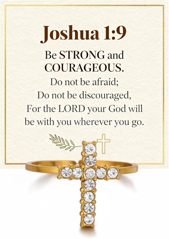 1 Pcs Dainty Faith Cross Ring for Women, 1 Pcs Motivational Inspirational Card, and 1 Pcs Cute Jewelry Box. Ready as a gift.