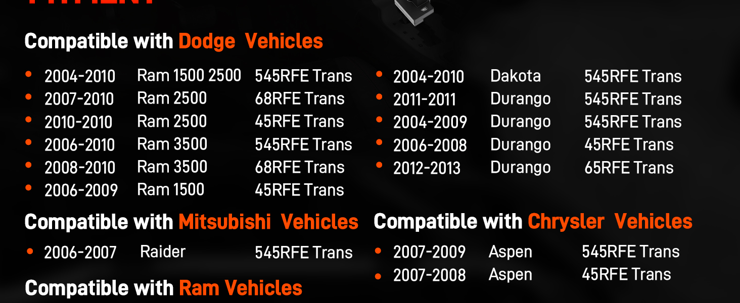 【DURABLE & RELIABLE PERFORMANCE】This solenoid pack is guaranteed to be 100% brand new, manufactured with high-quality materials, this solenoid pack is built to endure the high pressures and temperatures inside the transmission. It provides a dependable, long-lasting solution to prevent premature transmission wear and avoid costly repairs