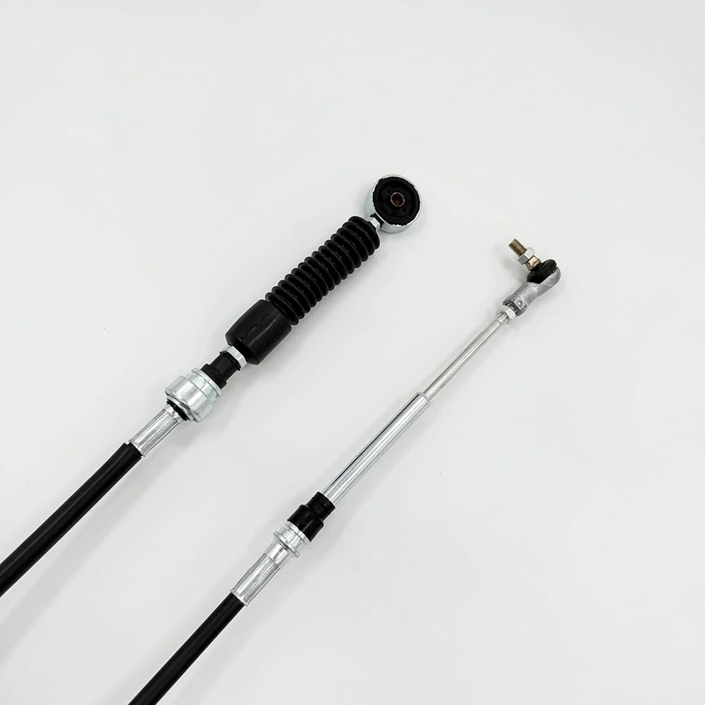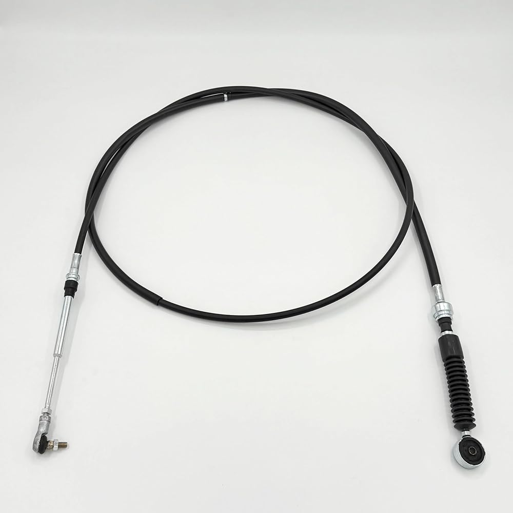 This heavy-duty transmission shift cable is specifically designed for Isuzu NPR, NQR, and NPR-HD models equipped with 4HE1 or 4HK1 engines and manual MZZ6 transmission, covering years 2002-2007. The cable features durable black plastic exterior finish with robust metal end fittings and a specialized design for smooth shifting operation. Ensures precise gear engagement and reliable transmission control. This vehicle-specific fit component is manufactured to meet exact specifications for seamless integration with your Isuzu commercial vehicle.