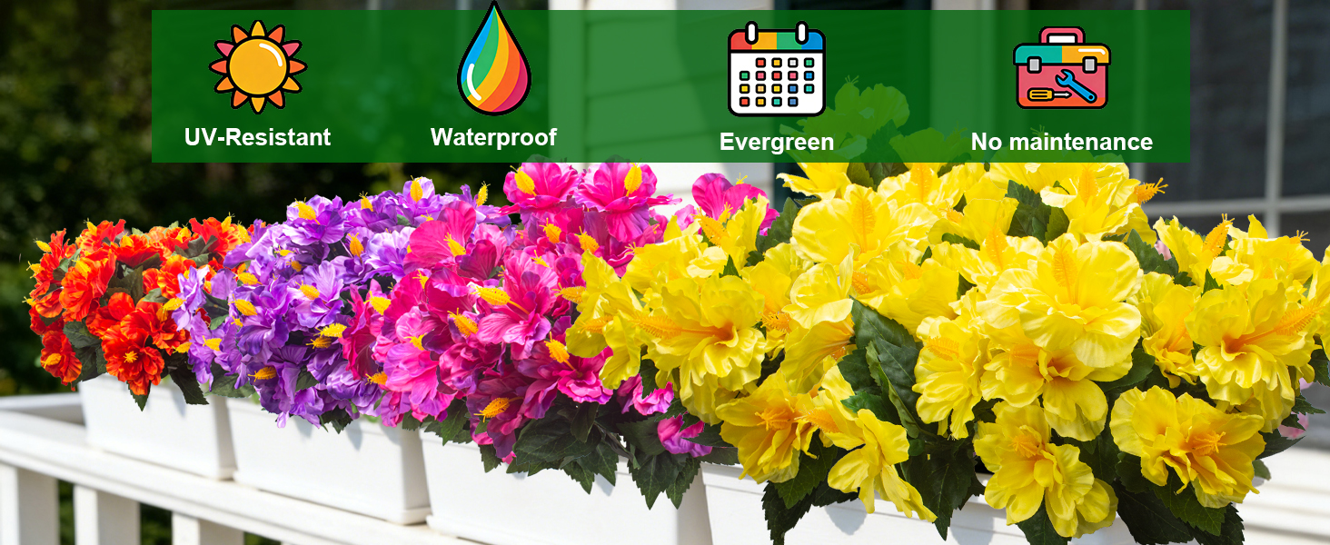 Tough Enough for the Outdoors: These aren't your average fake flowers. They are constructed with robust, UV-resistant materials to withstand full sun, heavy rain, and strong winds without fading or falling apart, keeping your space looking hot all season.