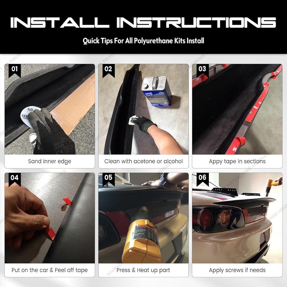 Superior Craftsmanship: This front chin spoiler splitter made from automotive grade Flexible Polyurethane(PU), which is light-weight, superior durability and impact resistance - making it perfect to withstand the hazards of daily driving (Special Note:Due to the characteristics of the polyurethane material, if you receive it warped, simply leave it flat outside under the sun and it will flex back to its original shape.)