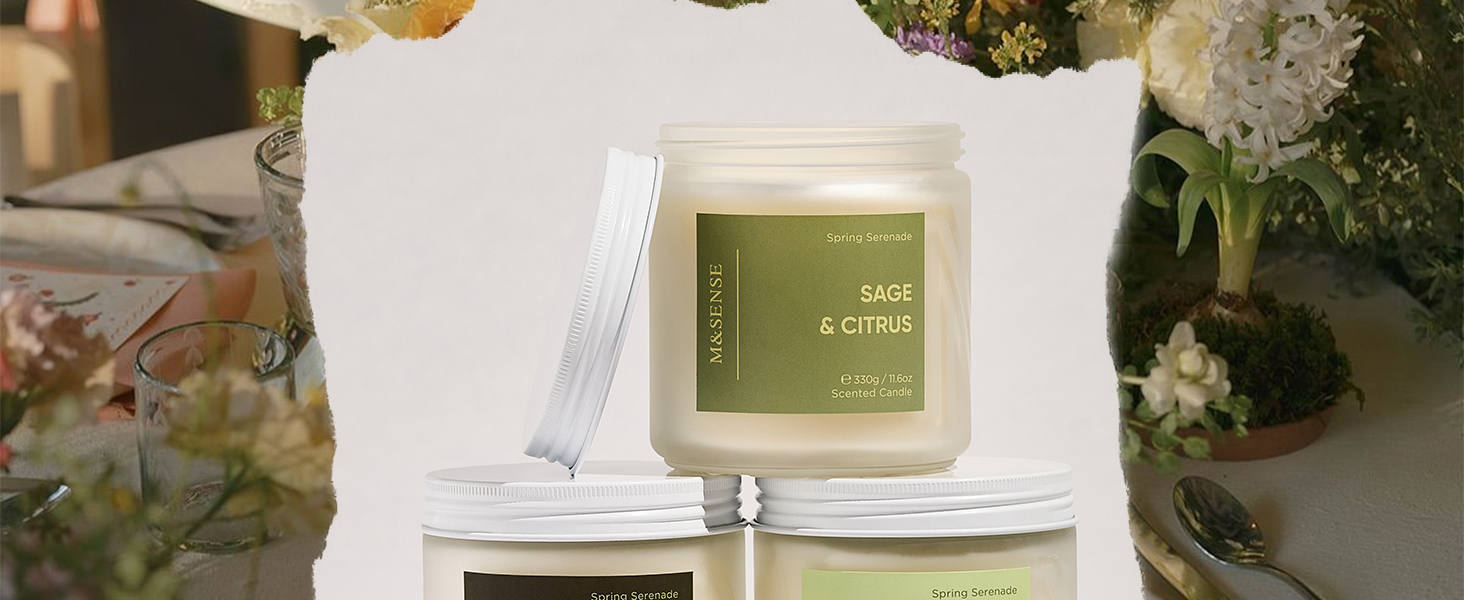 Sustainable Formula - M&SENSE scented candles are all made with the finest and most natural ingredients. Made with a high-end blend of American grown soy and vegetable wax with double unbleached cotton wicks in a reusable and recyclable glass jar. This candle burns cleanly, producing no smoke or harmful toxins. Packaged in recycled cardboard box for a more sustainable future