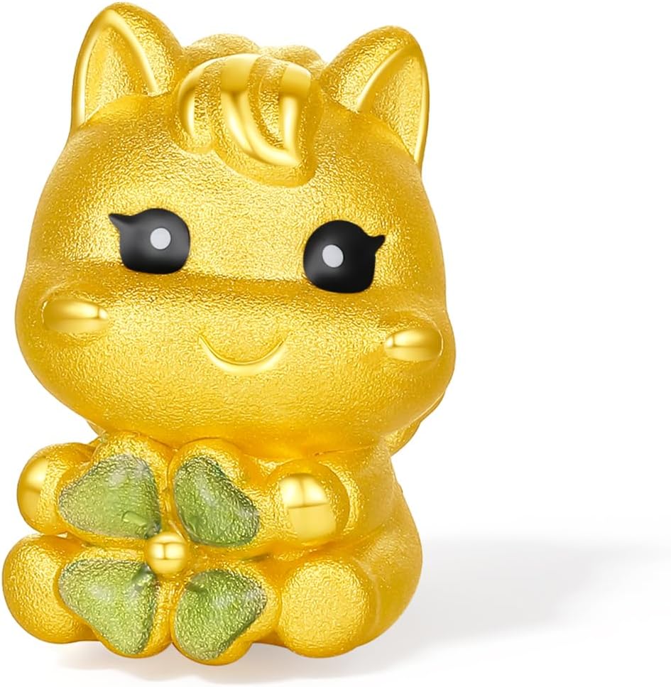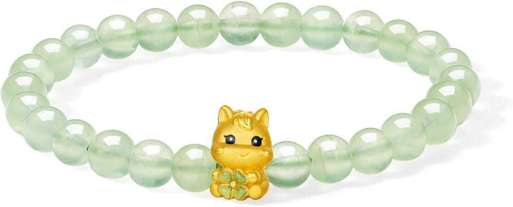 Unique Design: The gold charm is crafted into a cute horse design, holding a lucky four - leaf clover. With detailed features like the horse's gentle expression, it becomes the highlight of the bracelet, appealing to horse lovers and those who seek lucky talismans