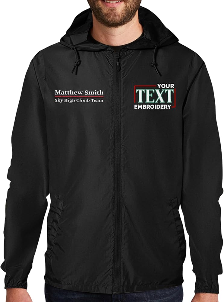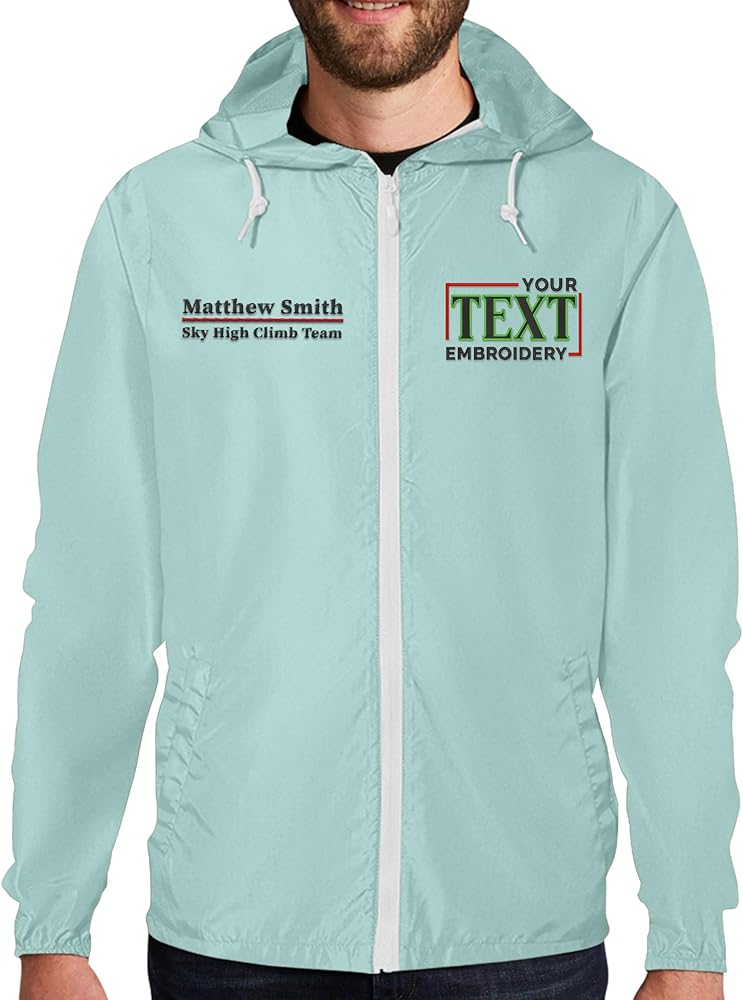 Design Your Own Mens Womens Embroidered Full-zip Windbreaker Anorak Jacket with our premium quality customized full-zip jacket made in Houston, Texas. We are the Teeamore brand of the Calmapparel company designing and printing unique custom apparel for men, women, kids and babies. These jackets are Perfect for birthdays, holiday parties, teams, businesses functions and much more.