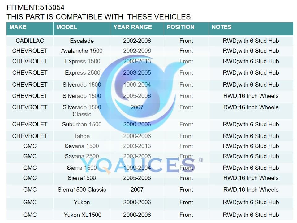 Aftersale Guarantee:If you have any questions about our wheel hubs or installation, please feel free to contact YQAUCES, we are online 24 hours a day for you
