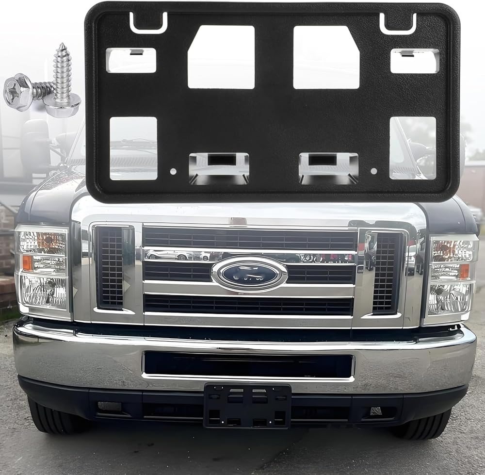 Front License Plate Frame Compatible with 2008-2014 Ford E-150 / E-250, 2008-2024 Ford E-350 Super Duty/E-450 Super Duty Front Bumper License Plate Holder Mounting Bracket Replace # 8C2Z17A385AA