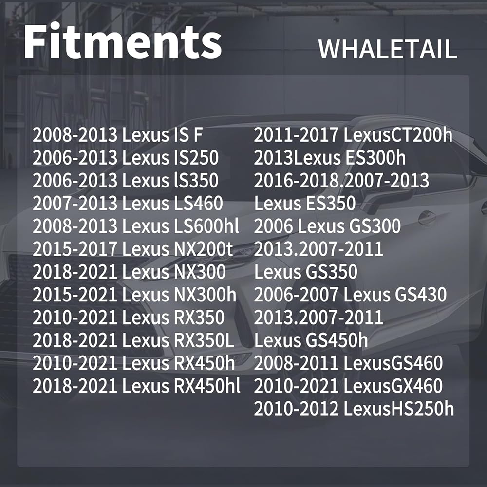 - 🚗【COMPATIBLE WITH】 Fit for Lexus 2011-2017 CT200h; 2013 ES300h; 2016-2018 2007-2013 ES350; 2006 GS300; 2013 2007-2011 GS350; 2006-2007 GS430; 2013 2007-2011 GS450h;2008-2011 GS460 ;2010-2021 GX460;2010-2012 HS250h; 2008-2013 IS F;2006-2013 IS250; 2006-2013 IS350; 2007-2013 LS350; 2007-2013 LS460; 2008-2013 LS600hL ; 2015-2017 NX200t; 2018-2021 NX300; 2015-2021 NX300h ;2010-2021 RX350;2018-2021 RX350L; 2010-2021 RX450h ; 2018-2021 RX450hL.