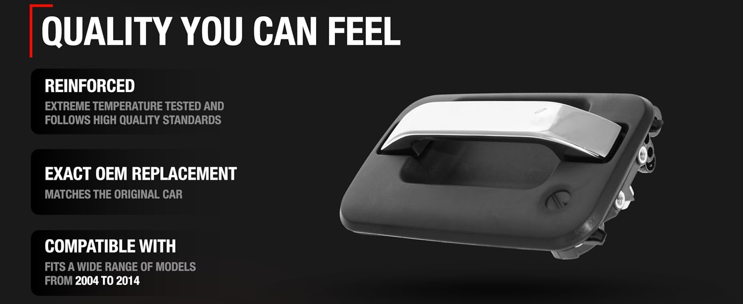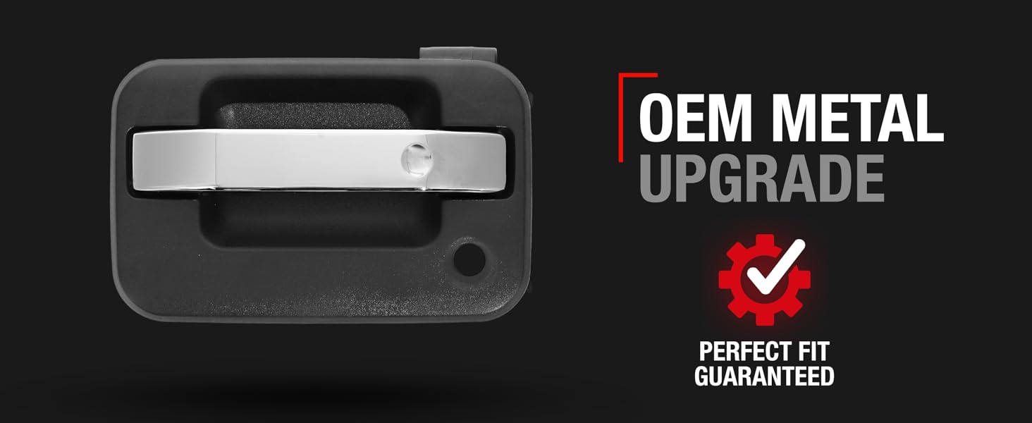 DURABLE MATERIAL: Made from upgraded metal, the handle's chrome finish with black housing ensures long-term durability and matches your vehicle's exterior.