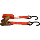 RATCHETING SECURITY: Features a gold chromate-coated ratchet buckle that applies high tension and stays locked until the lever is pulled and the handle opened, ideal for safely securing loads on rough roads or through sudden vehicle movements.