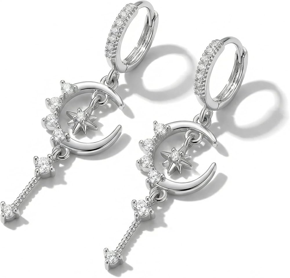 Celestial Design: These moon earrings feature an elegant star and crescent motif that adds a touch of celestial charm to any outfit; Crafted with attention to detail, the silver finish provides a subtle shine suitable for both daytime and evening wear; The lightweight construction ensures comfort during extended use while maintaining a stylish appearance