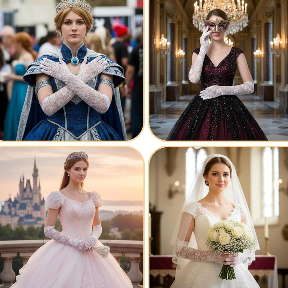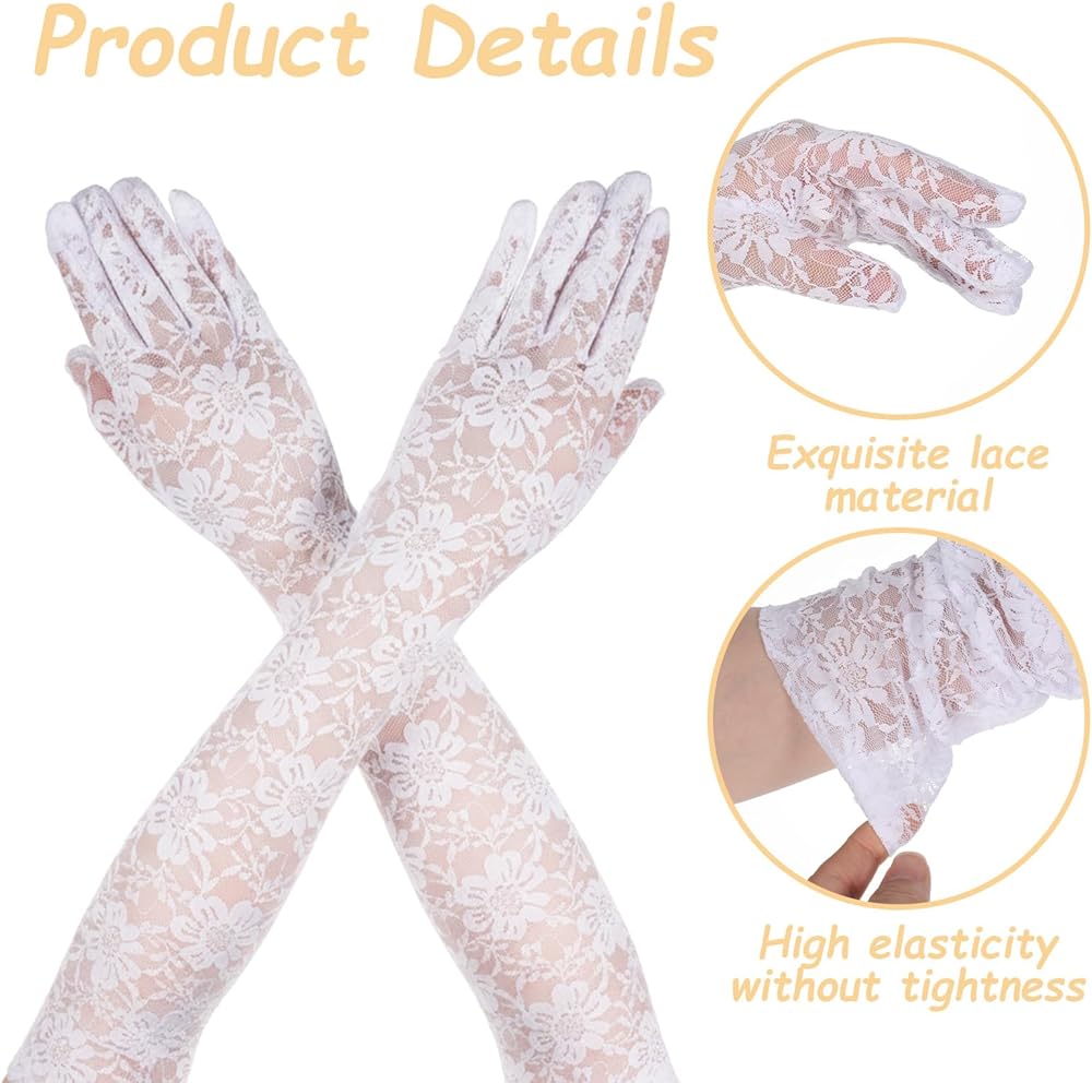 Add a touch of timeless elegance to your special day with our exquisite White Lace Gloves Women. These Wedding Sleeves for Bride are crafted from high-quality polyester lace, offering a delicate and sophisticated look. The intricate floral patterns create a romantic and feminine aesthetic, making these White Long Gloves an ideal accessory for any bridal ensemble. The Long White Gloves Women are easy to match with various outfits, from vintage to contemporary styles, adding a unique touch of elegance to your look.Whether you're attending a wedding, a tea party, or a masquerade ball, these Lace Gloves White are the perfect accessory to complete your ensemble.