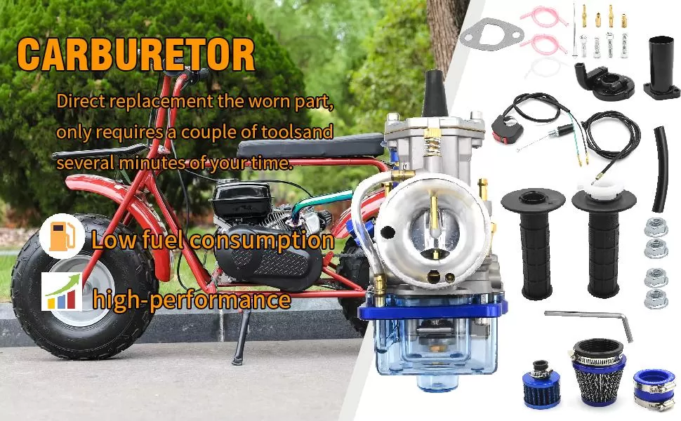 Package Includes:1* Carburetor 2* Air Filters 1* Fitting 1* Handle 1* Cable Puller 1* White Hose and more accessories