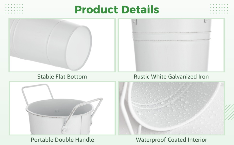 Ample Set for Decorating: Includes eight galvanized metal buckets to cover everyday decorating needs; each measures 5.9 x 10 in; suitable for dried flowers or fresh arrangements to create eye-catching and memorable decorative displays