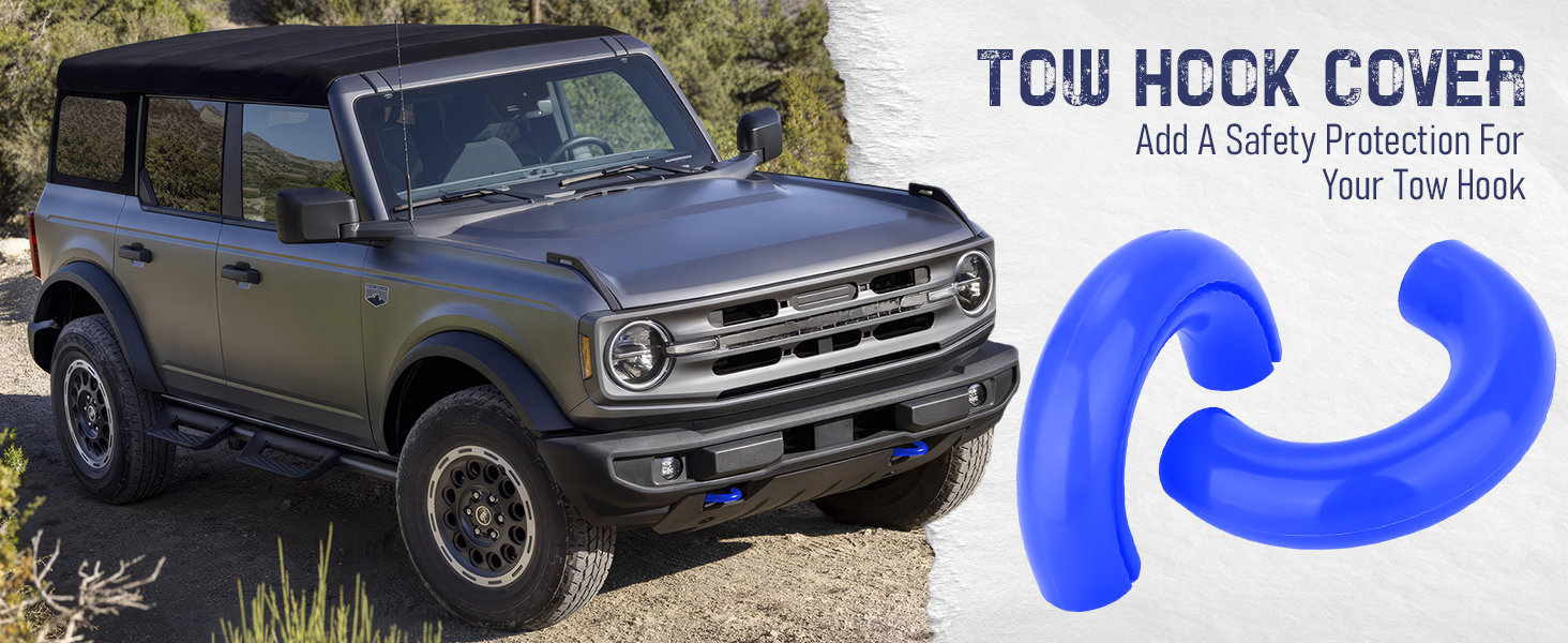 Multifunctionality : The bronco tow hitch cover not only suitable for front trailer hooks , On physically they suitable for rear tow hooks too but ,if you install it on the rear tow hook You need to do some pruning appropriately