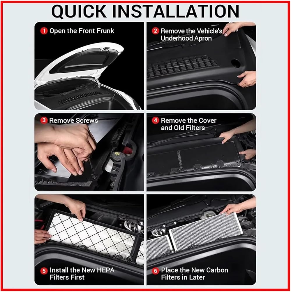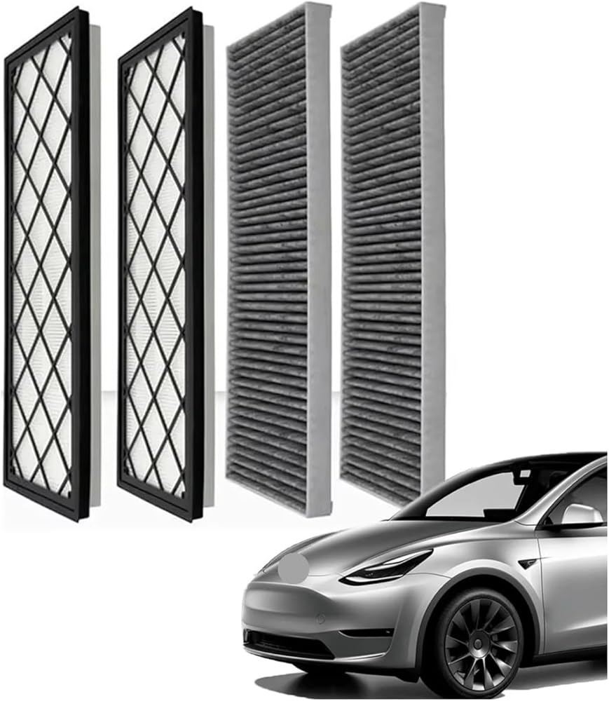 4PCS Air Conditioning Filter Compatible For Tesla Model Y Activated Carbon Cartridge External Upper And Lower Layer Filters