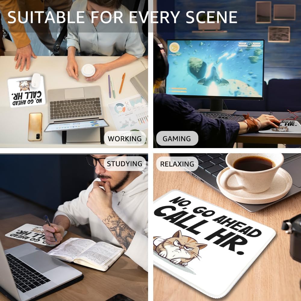 No Go Ahead Call HR Non-Slip Mouse Pad with Stitched Edge, Funny Sarcastic HR Joke Mousepad Gifts for Coworkers Boss, Human Resources Present, Hr Manager Gifts, Unique Teammates Gifts Idea