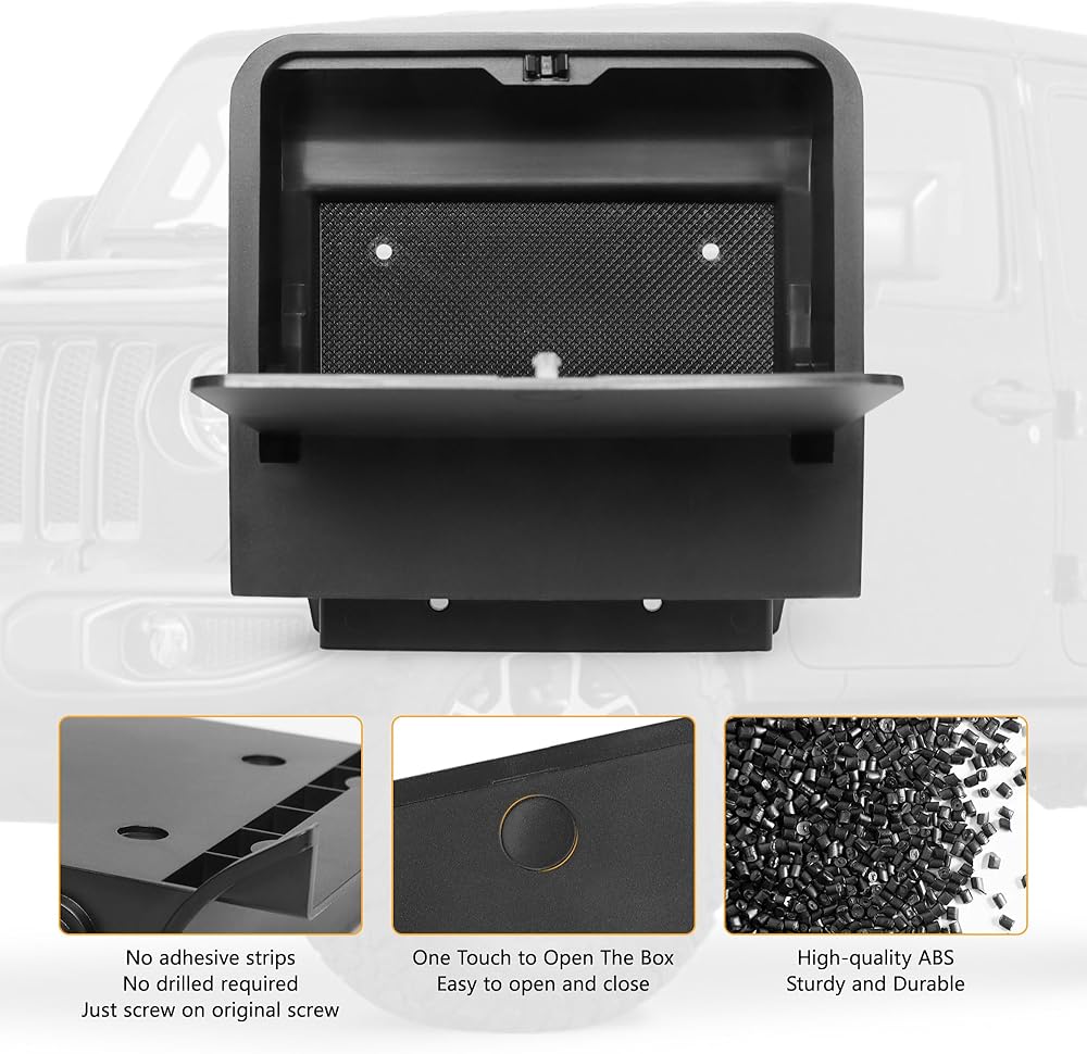 DURABLE MATERIAL: The hidden organizer box is a smooth surface, made with a well-made quality ABS plastic box. Solid build structure sturdy and durable. It's a useful add-on and fits perfectly under the console lid. The toughest interior accessories built for Jeep adventures
