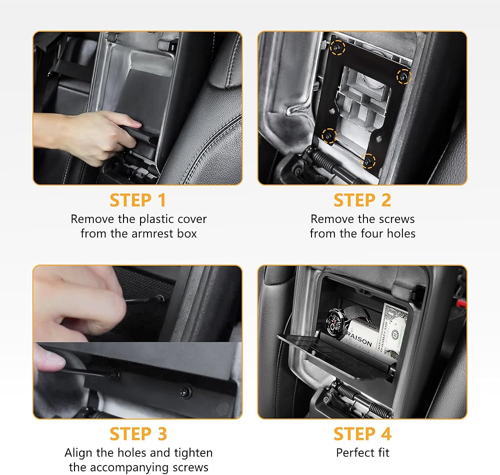 EASY TO INSTALL: These center console hidden box adopts an upgraded design and is fixed with screws, which is more secure than traditional adhesive strips. No need to drill holes. Just tighten the screws in a few minutes to complete the installation