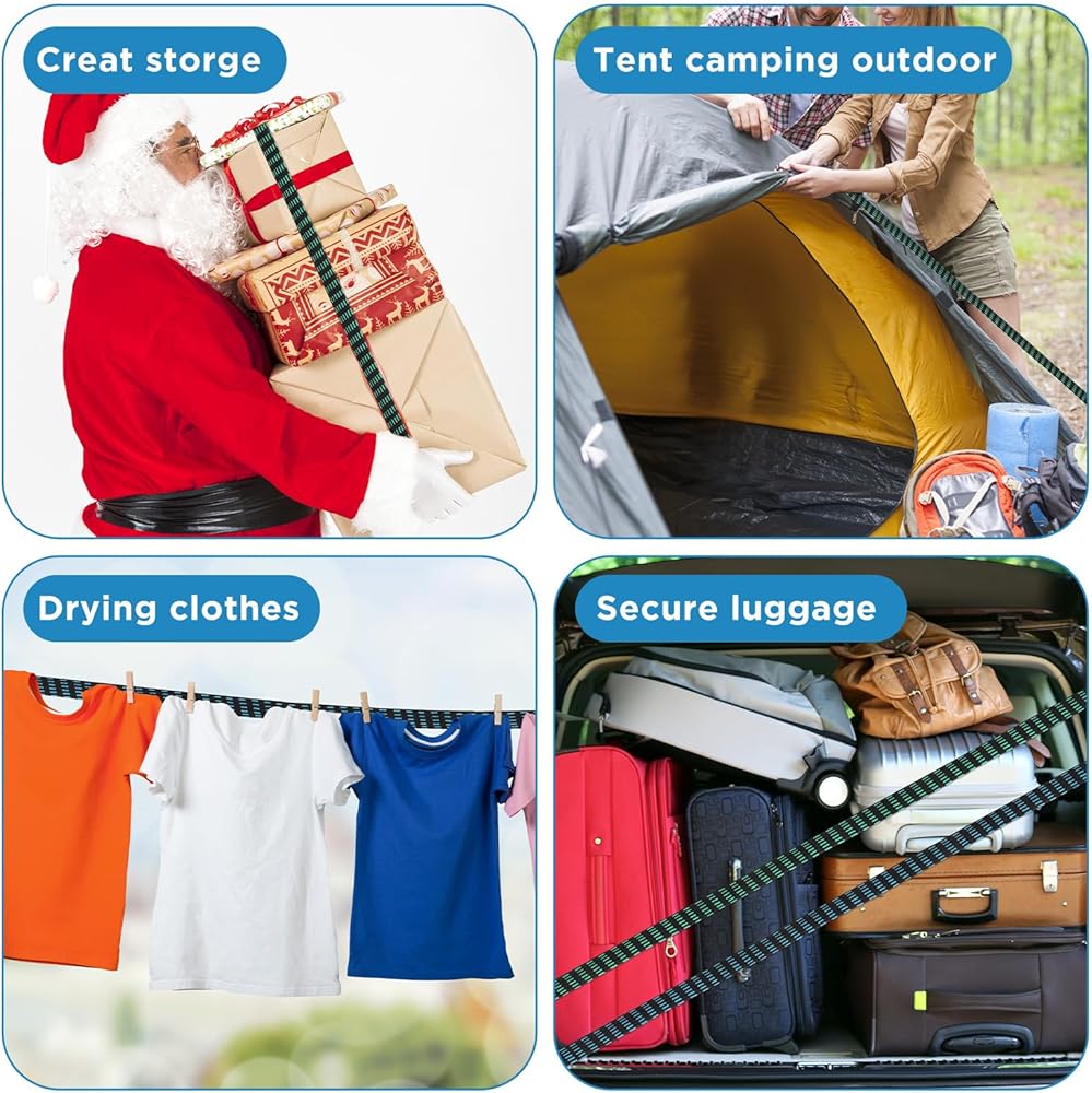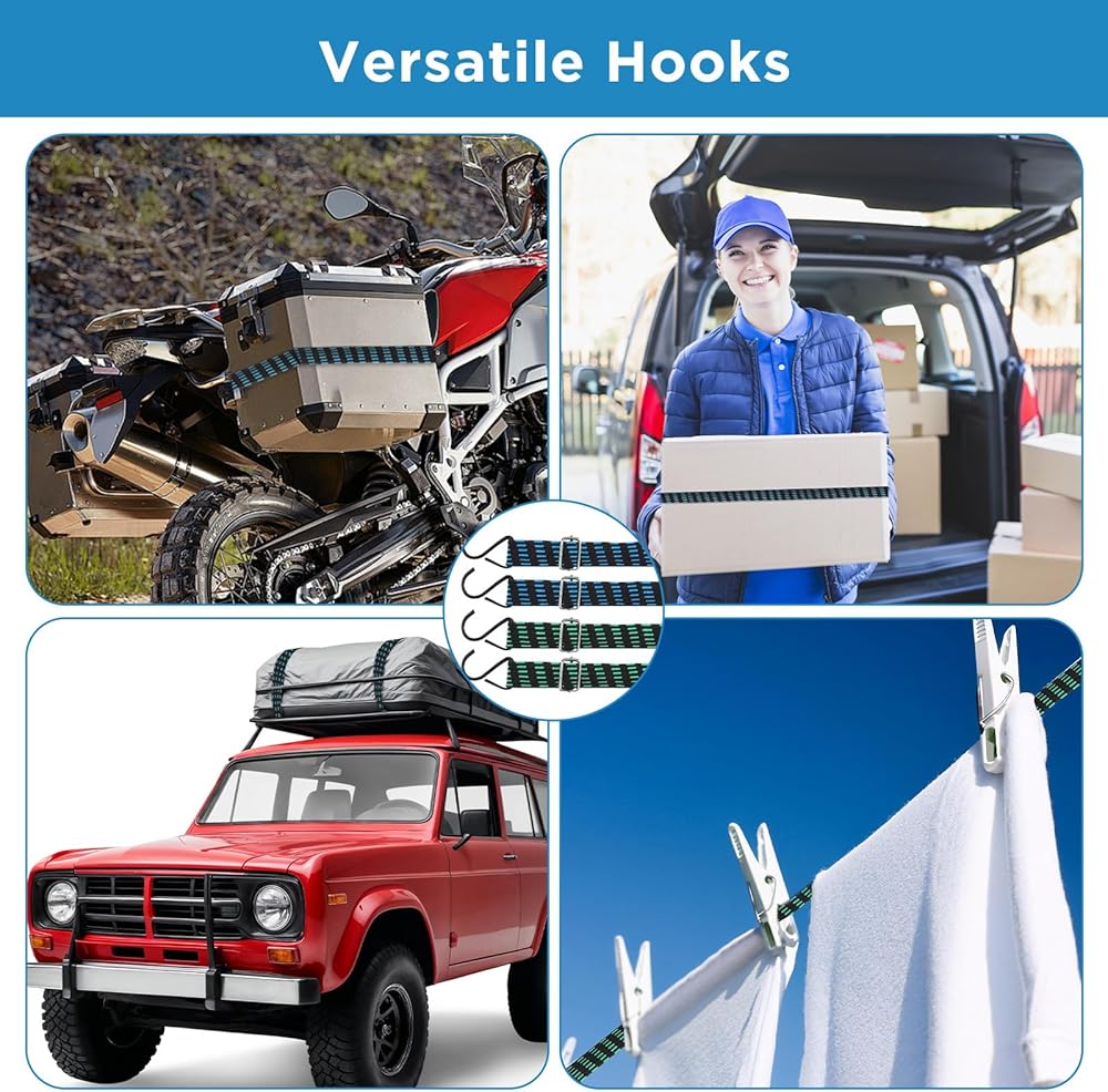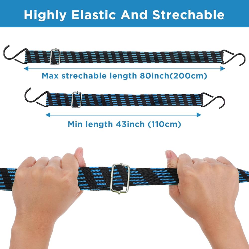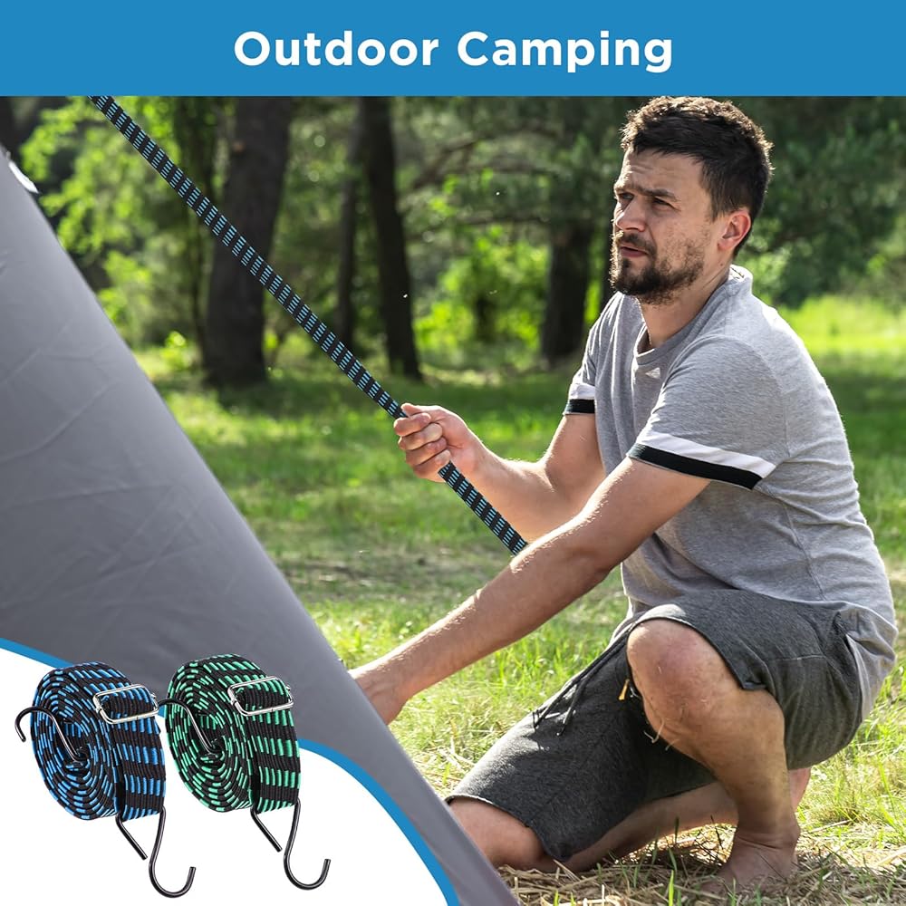Secure heavy loads effortlessly with this 8-pack of heavy-duty 80-inch flat bungee cords! Featuring durable rubber cores and reinforced metal hooks, these adjustable straps provide superior grip for tarps, cargo, luggage, or camping gear without slipping. The flat design prevents rolling and offers wider surface contact for enhanced stability during transport. Ideal for trucks, trailers, moving vans, or roof racks – withstands tough conditions while resisting weather, UV rays, and stretching. Color-coded options (Green/Black, Blue/Black) simplify organization. Reusable and versatile: tackle DIY projects, outdoor adventures, or emergency fixes with industrial-strength security!