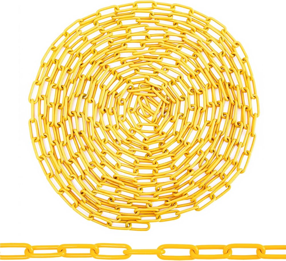 The yellow coated safety chain is ready for use, the yellow coated finish not only adds an attractive appearance but also wards off wear and tear.