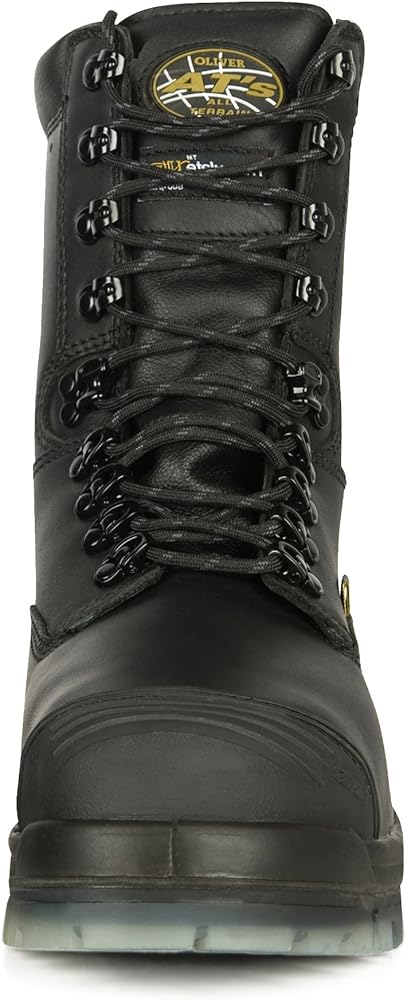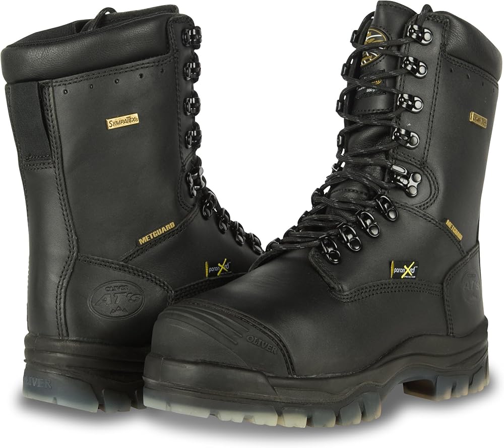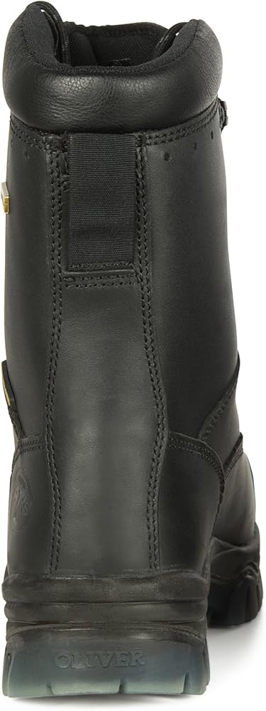 Oliver footwear stands for quality, comfort and protection. With over 120 years of boot making experience, Oliver's unique history and superior craftsmanship have produced the ultimate combination of rugged and comfortable work boots. Our 8", Waterproof, Protective Toe, Lace up Leather Safety Boot features an all terrain TPU soling technology consists of a lightweight, shock absorbing, low-density polyurethane (PU) midsole and a high-density, hard wearing thermoplastic urethane (TPU) outsole which is long lasting and resistant to mineral and organic oils and acids, and resistant to cuts, splits and cracks. The TPU Outsole is heat-resistant to 266 Degree F (130 Degree C) surface contact, is excellent for slip resistance, and is electrical resistant. It's NATUREform hi-impact composite, non-metallic toe cap offers a wide profile shape to accommodate the natural toe-spread when walking and flexing - while the TECtuff toe bumper protects leather in high abrasion areas for longer boot life. The water-resistant, full grain leather upper, is fully lined with a SYMPATEX waterproof liner and membrane and the boot collar is padded for extra comfort. This style has a Thinsulate thermal liner which provides additional warmth and comfort in cold temperature applications. It includes a lace-locking device makes lacing up easier by holding laces while tightening for a custom fit. Our COMFORTcushion uses a combination of cellular urethane and PORON to protect the heel and ball of the foot. The impact absorption helps to reduce foot, leg and lower back fatigue. The PORON XRD, extreme impact protection, metatarsal guard is soft and flexible for greater comfort and hardens upon impact for great protection. This style is Available in men's whole sizes: 6-15 and half sizes 71/2-111/2. It meets ASTM F2413-11 M I/75 C/75, MT/75 and EH. Suggested applications include Agriculture, Building & Construction, Mining & Quarrying, and Mineral Processing Environments.