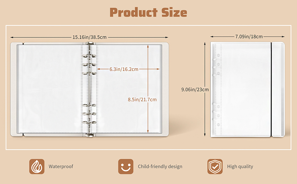 Size: The card organizer inserts pouches measures 8.5 x 6.3 inches/21.7 x 16.2cm; index card binder cover measures 9.06 x 7.09 inches/23 x 18cm, and it comes with a sturdy elastic cord to hold it closed.