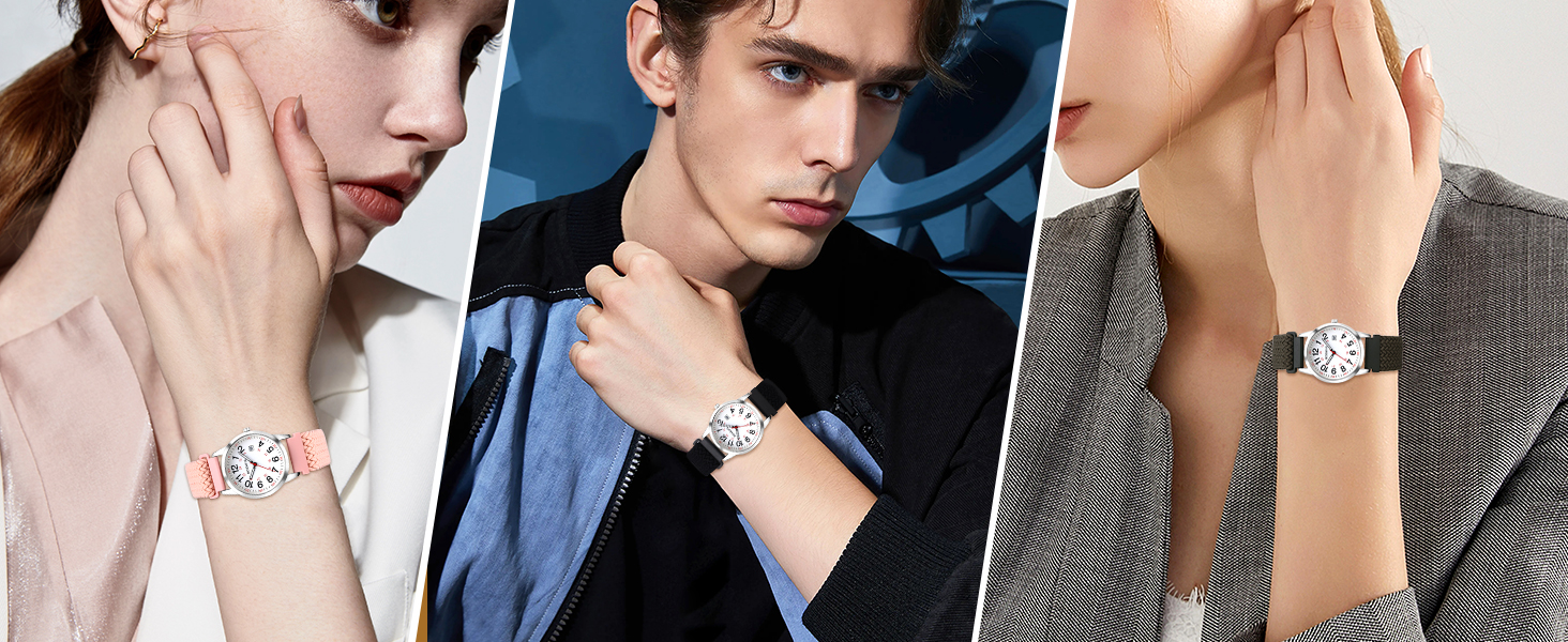 Braided Elastic Band - Compared with other elastic watches, this woven strap watch is more flexible. It adjusts easily to fit wrist sizes from 7.08 inches (18 cm) to 11.02 inches (28 cm), providing comfort for all-day wear.