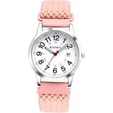 Stylish Design - This elastic watch features a pink woven strap with a silver tone case, offering a modern and versatile look suitable for any occasion.