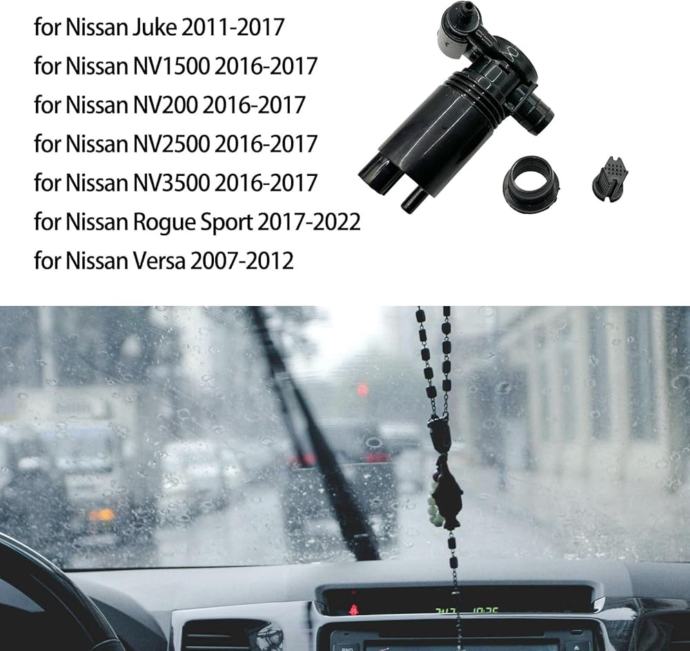 Model Fitment: Washer Pump for Nissan Juke 2011-2017, for Nissan NV1500 2016-2017, for Nissan NV200 2016-2017, for Nissan NV2500 2016-2017, for Nissan NV3500 2016-2017, for Nissan Rogue Sport 2017-2022, for Nissan Versa 2007-2012