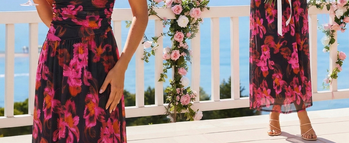 Fabric: Crafted from soft, breathable mesh fabric with a fully lined, non-see-through interior, this summer wedding guest dress ensures both comfort and modesty, can be easily worn all day long. Whether you're strolling along the shore, attending a tropical ceremony, or enjoying a sunset cocktail, it's your go-to beach wedding guest dress or vacation maxi dress