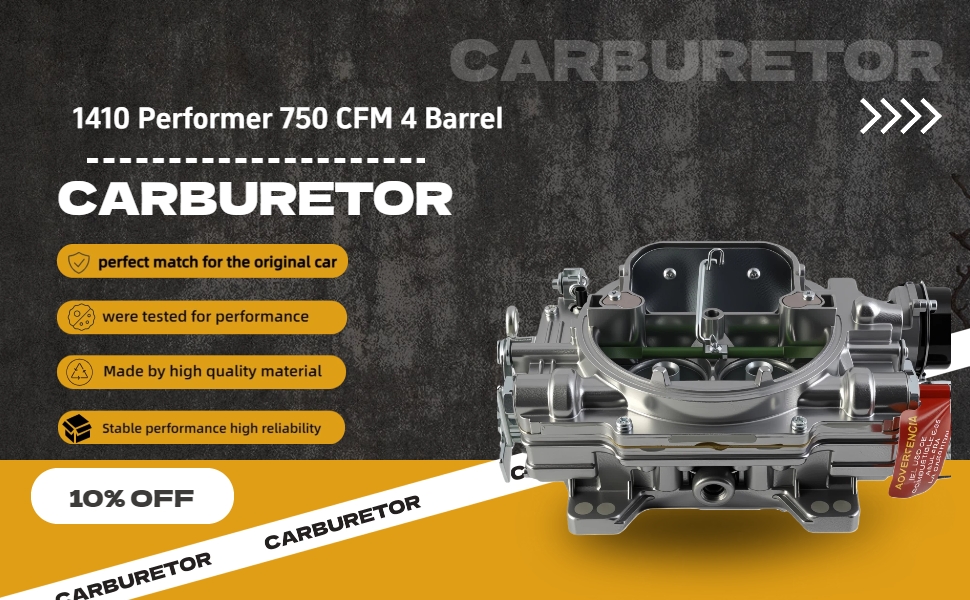 1410 Performer 750 cfm Carburetor is precision cast to meet or exceed OEM specifications, precision CNC machined from high quality aluminum alloy, silver polished exterior, no blown power valves or broken plastic parts, hard wearing and durable, base bolt type is 3 / 4 x 2 inch.