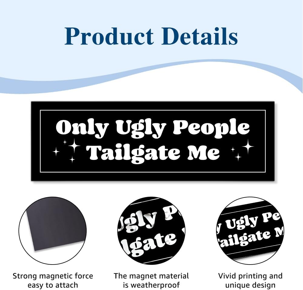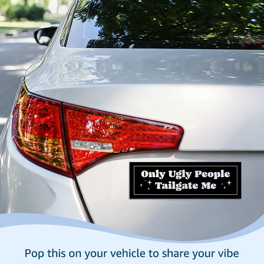 Only Ugly People Tailgate Me Car Bumper Magnet Sticker, Sarcastic Anti-Tailgating Waterproof Black Car Sticker, Humor Anti-Tailgating Truck Vehicle Bumper Magnet for Student Driver New Driver