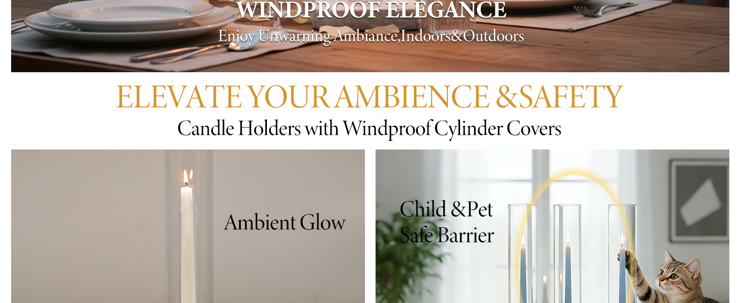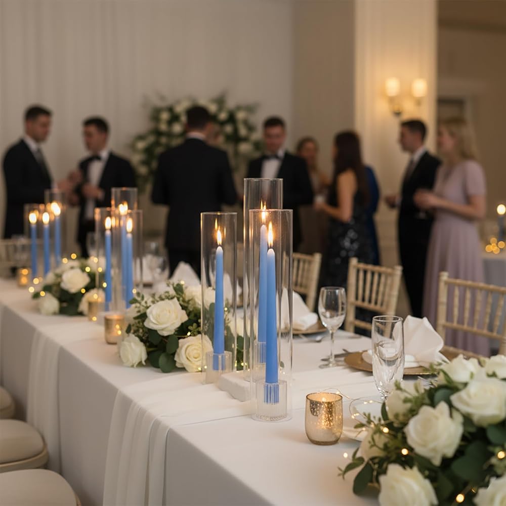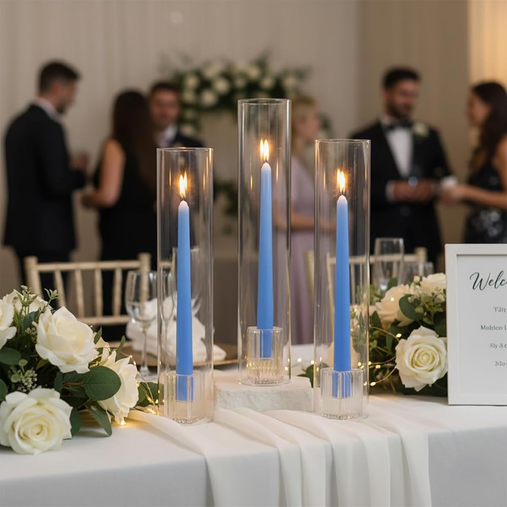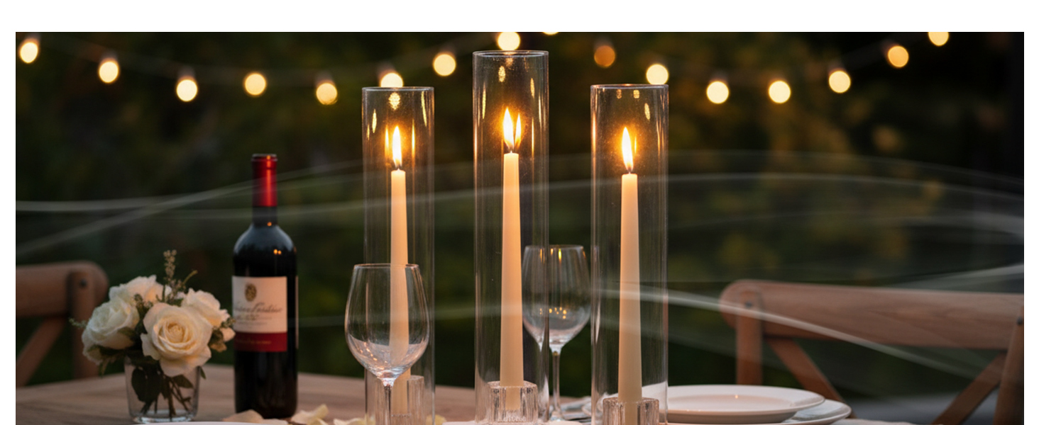 Professional's Choice: The clear taper candle hurricane glass allows for versatile styling in any grand celebration. Beyond events, these candle holders with glass cover beautifully enhance holiday gatherings, romantic dinners, or serene home ambiance with their dynamic decor possibilities.