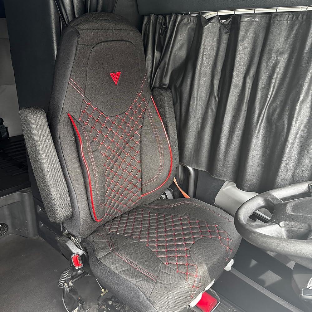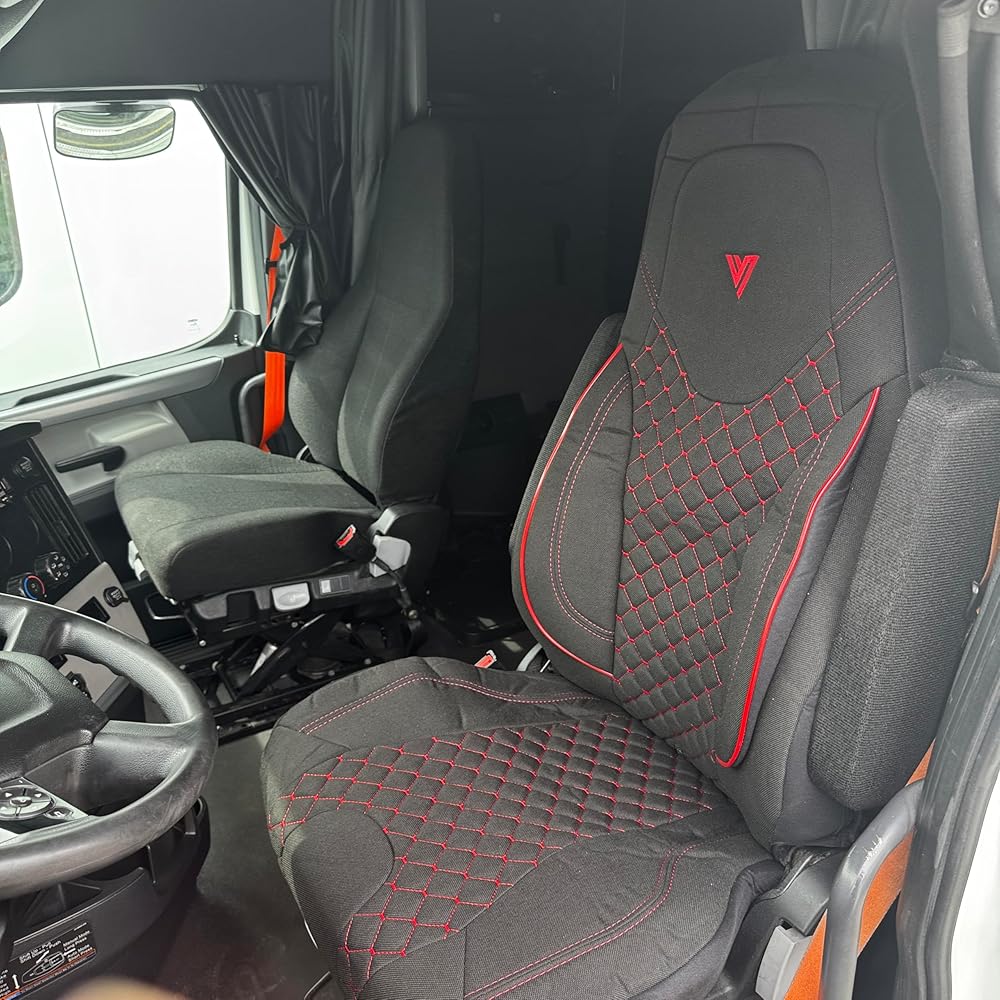Protect and enhance your truck interior with this premium 33-inch high-back seat cover, engineered to fit Freightliner Cascadia OEM stock seats with a clean, custom-style appearance. Designed around the original seat geometry, this cover installs smoothly over the factory seat, delivering dependable protection, improved comfort, and a professional look suited for everyday commercial driving. Constructed from heavy-duty automotive-grade materials, the seat cover is built to withstand the demands of long-haul and regional use. It helps protect the original upholstery from dirt, dust, spills, sweat, and daily wear caused by frequent entry and exit. The durable outer surface maintains a sleek, factory-style finish, allowing your cab to stay organized and professional without altering the original seat structure. For added comfort during extended driving hours, the cover features orthopedic padding with anti-deformation sponge. This padding is designed to retain its shape over time while providing consistent support, helping reduce pressure points and discomfort on long routes. Reinforced stitching along high-stress areas improves durability and helps prevent premature wear, making the cover suitable for daily use in demanding driving conditions. Installation is quick, secure, and completely tool-free. The cover fits snugly over the OEM seat and stays firmly in place without sliding, bunching, or shifting during normal operation. It is designed to remain stable even with frequent movement in and out of the cab. Maintenance is simple and convenient—cleaning requires only a damp cloth, making it easy to keep your interior looking fresh and well-maintained. Ideal for owner-operators, fleet drivers, and professional truckers, this high-back seat cover offers a practical interior upgrade that balances protection, comfort, and durability. Whether you are protecting a new seat, refreshing a worn interior, or maintaining a consistent professional appearance across your fleet, this seat cover provides a reliable solution designed specifically for Freightliner Cascadia trucks.