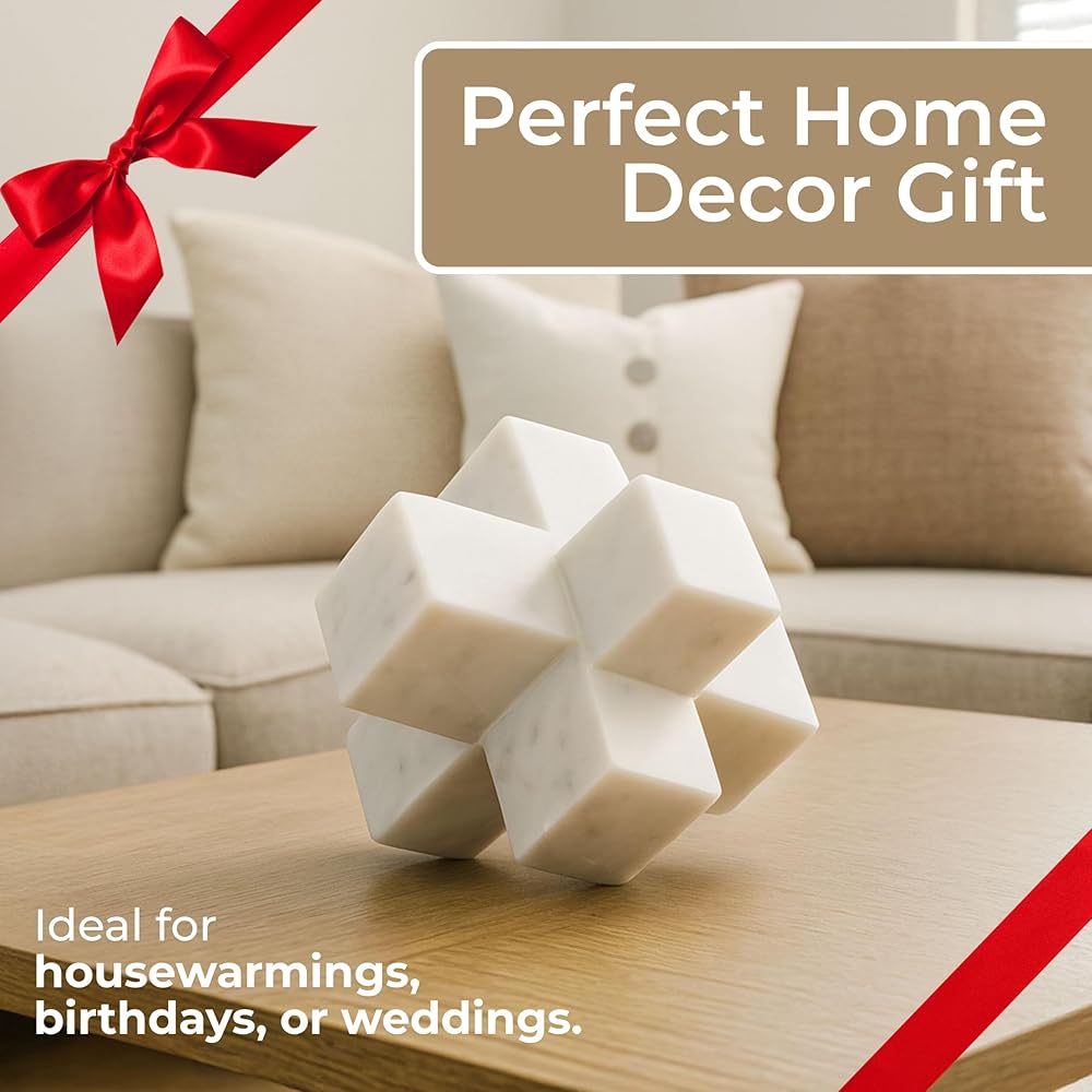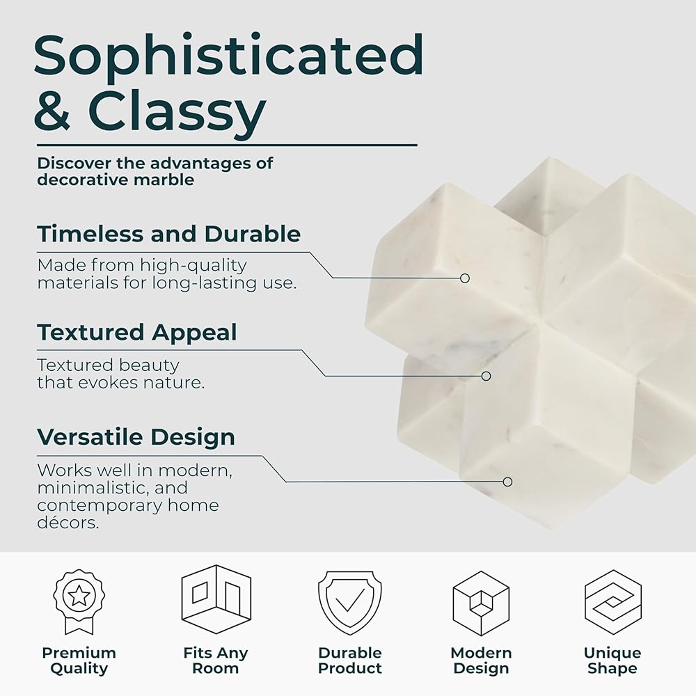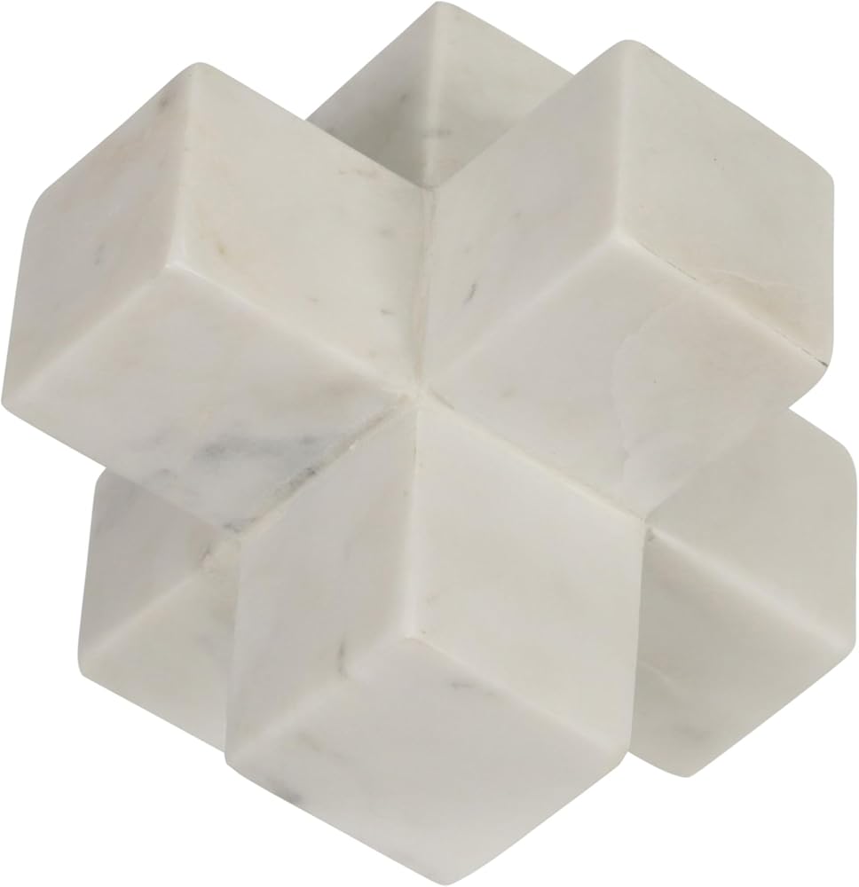 Elevate your space with the Sagebrook Home White Geometric Cube Decorative Object, a minimalist marble sculpture designed to enhance any room. Measuring 6.5" x 6.5" x 6.5", this decorative sculpture brings clean lines and architectural elegance to living rooms, bedrooms, offices, or entryways. Crafted from solid white stone with a matte finish, this lightweight yet sturdy decorative piece offers lasting beauty and effortless placement. Its geometric form provides a striking visual anchor for curated shelves, coffee tables, or table displays. Ideal as modern coffee table decor, table accessories decor, modern decor for shelves, decorative table decor, decorative sculpture, decorative home decor, decorative pieces, modern home decor accents, and decorative accents for home decor, this versatile ornament blends seamlessly with mid-century modern, Boho, contemporary, and minimalist interiors. Use it alone as a statement centerpiece or pair with other decorative pieces for layered styling. Its sculptural design brings depth, balance, and sophistication to any space, while also making it a thoughtful gift for design enthusiasts or housewarmings.