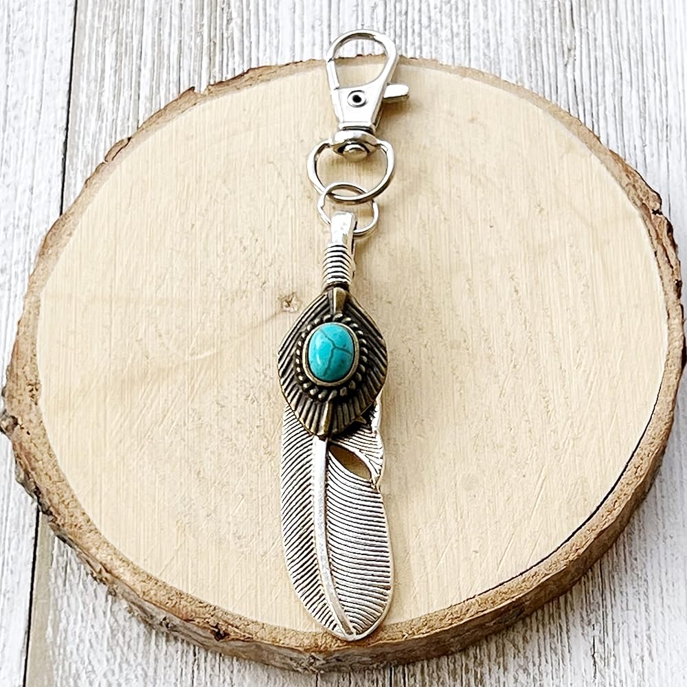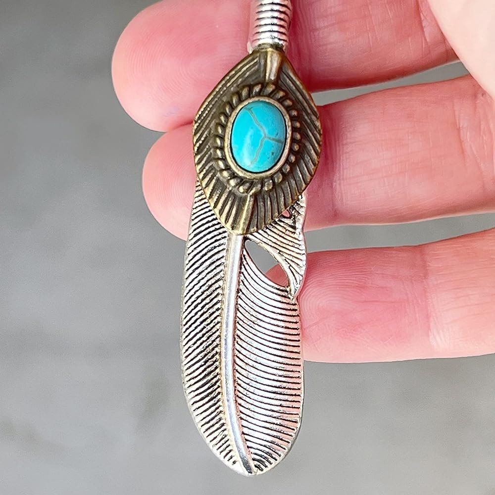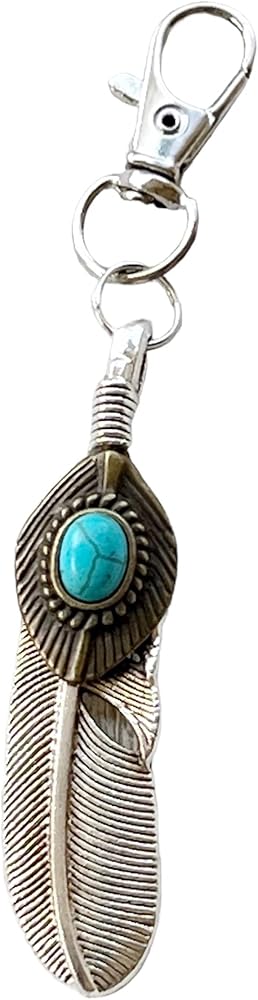 Gorgeous Large silver toned Boho Western Feather with Faux turquoise zipper pull charm. This beautiful zipper pull is a perfect gift for Western Lovers. Accent your Jackets, purse, backpack, camera bags, luggage etc. The possibilities are endless. The Feather is approximately 2.50 inches long and approximately .58 inches in width. The full charm with clip measures approximately 3.86 inches in length.
