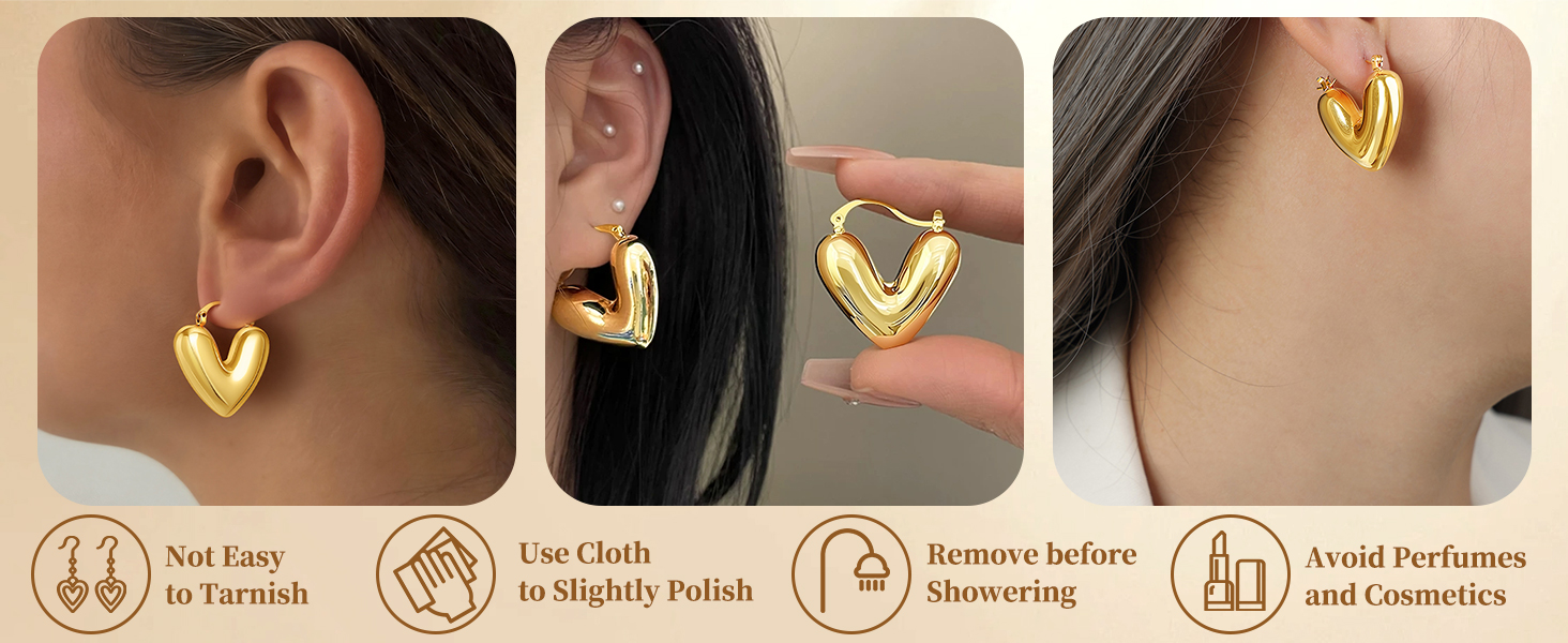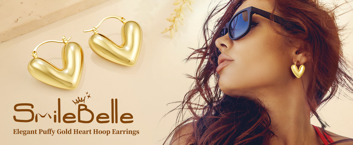 Gold Heart earrings: Experience the "less is more" magic. These classic heart hoop earrings for women add a refined sparkle to daily outfits, become your secret weapon for dates, and serve as a cherished token of affection. Additionally, heart shaped earrings' puffy heart design adds a contemporary twist.