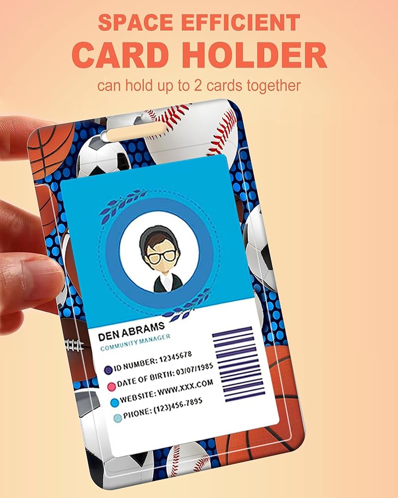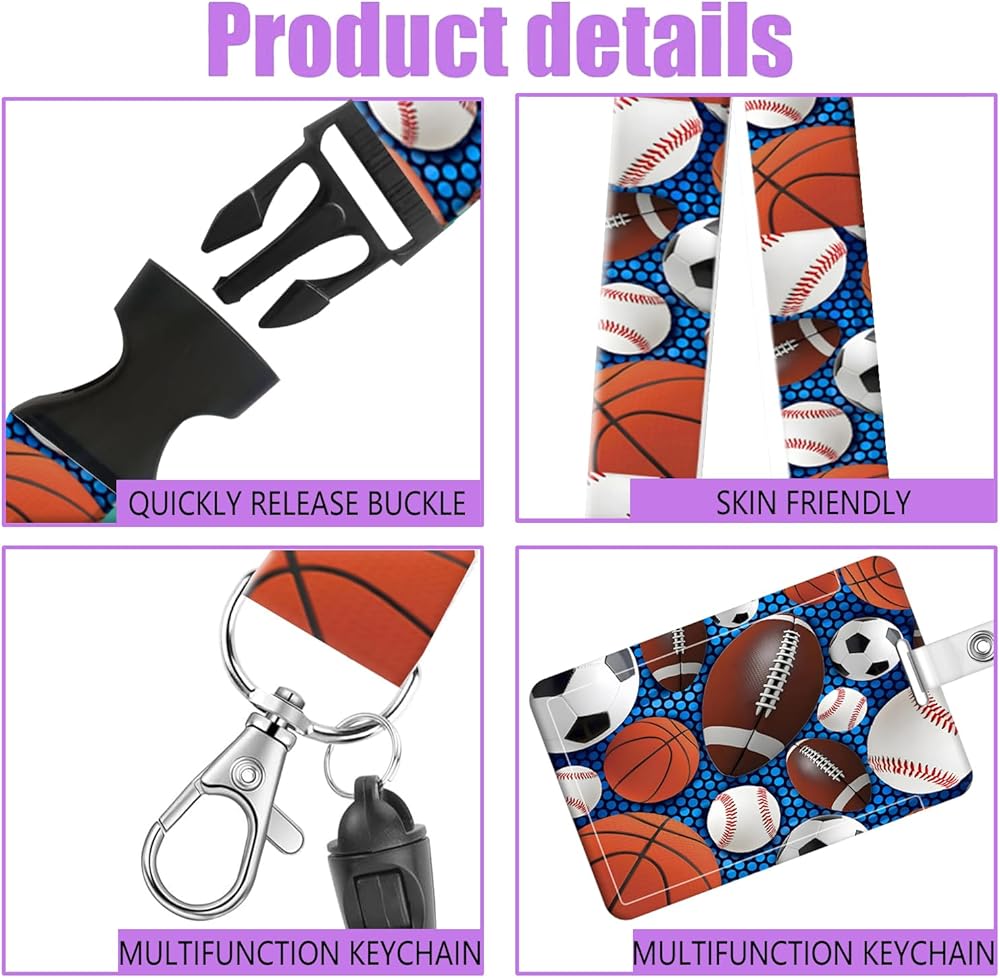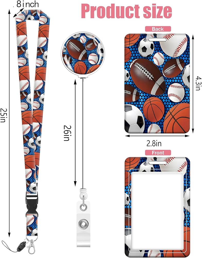 Badge Reels Retractable with Carabiner Reel Clip, ID Name Tag Work Badge Holder Belt Ferrule, Identity ID Badge Holder Cover Case for Office Work Nurse Teacher Student(Baseball Football Basketball)