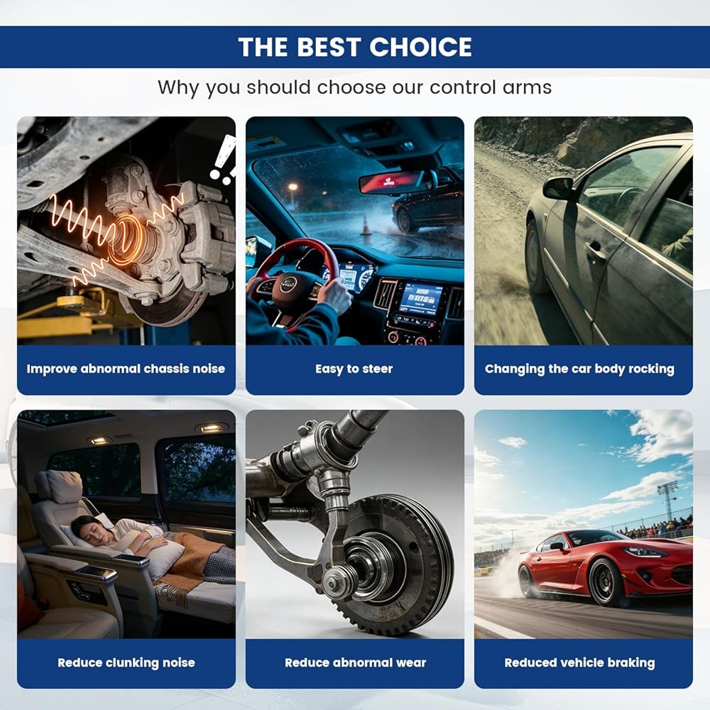 【Durable Quality】Control Arm Kit Made of upgraded premium quality material and undergo impact, wear and fatigue testing to provide more stability during operation. The steel body and pre-installed rubber bushings can effectively dampen vehicle vibrations and reduce noise, improving vehicle driving performance and handling characteristics