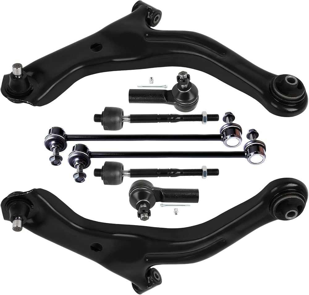Package Content: 1 x K623209 Front Lower Control Arm and Ball Joint - Passenger Side, 1 x K623210 Front Lower Control Arm and Ball Joint - Driver Side, 2 x ES800846 Front Outer Tie Rod End, 2 x EV800911 Front Inner Tie Rod End, 2 x K80296 Front Sway Bar End Link