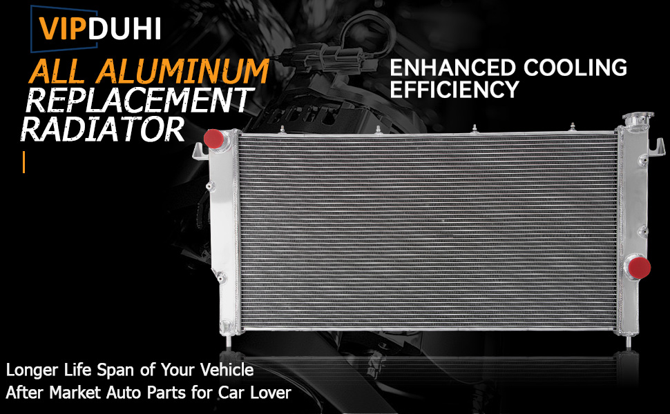 High Cooling Efficiency: VIPDUHI radiator cooling rows are spaced 3/8'' apart, giving you 25% more rows within the core, 14-16 cooling fins per inch, giving you approximately 1500 more cooling fins, provides 30% more cooling capacity