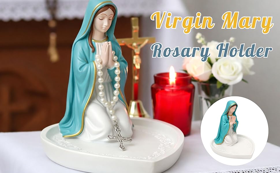Mother Mary Rosary Virgin Holder 5.9'' Blessed Statue, Our Lady Prayer Stand Figurine for Jewelry, Resin Sacred Sculptures, Religious Decoration, Ideal Catholic Gift, Home Decor & Personal Devotional